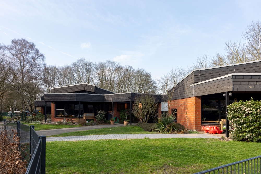 Es liegt im Norden Krefelds, in der Nähe des Stadtwaldes und direkt neben der Kirche St. Hubertus. Umgeben von einer großzügigen Außenanlage, bietet unsere Einrichtung Platz für vier Gruppen.