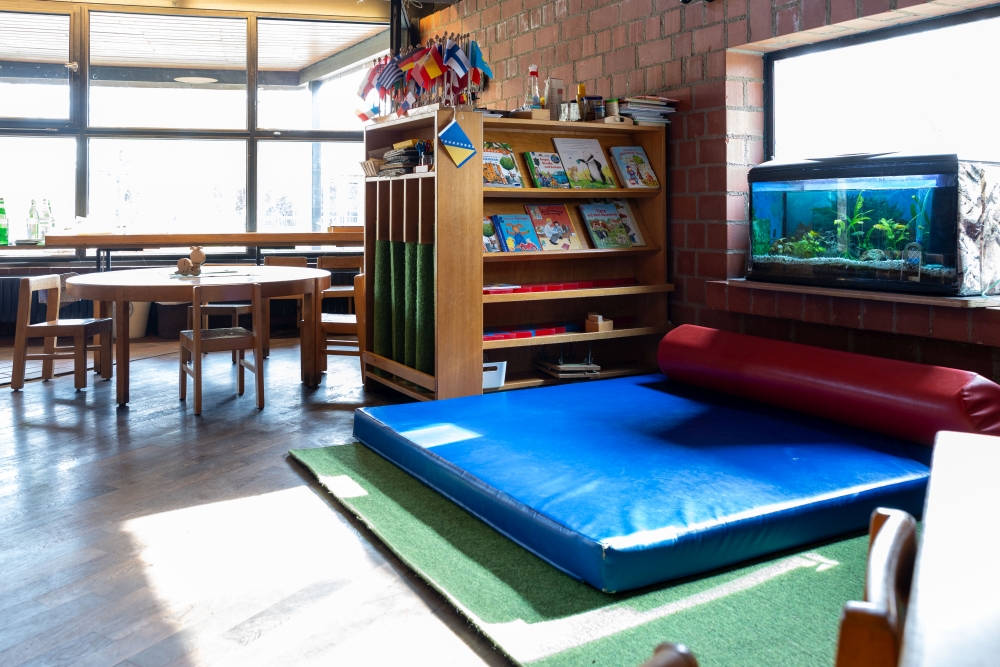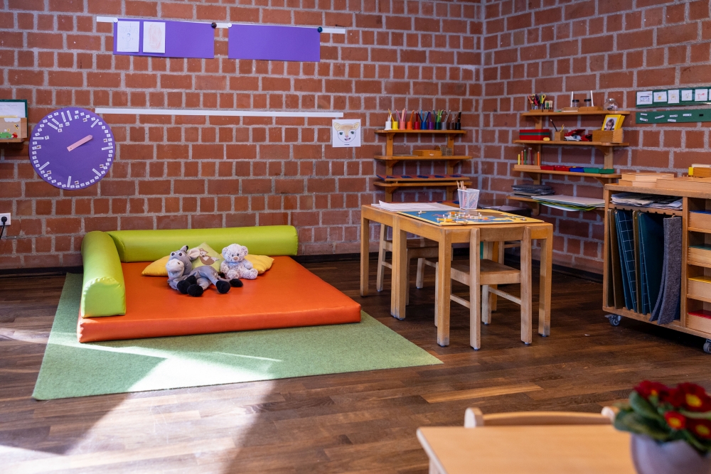 Architektonisch ist das Kinderhaus schon etwas Besonderes. Die Räumlichkeiten sind kindgerecht gestaltet und im Rahmen der Freiarbeit können sich die Kinder im Haus frei bewegen. Das heißt, sie können ihre Beschäftigung nach ihren Spiel- und Lernbedürfnissen frei wählen.